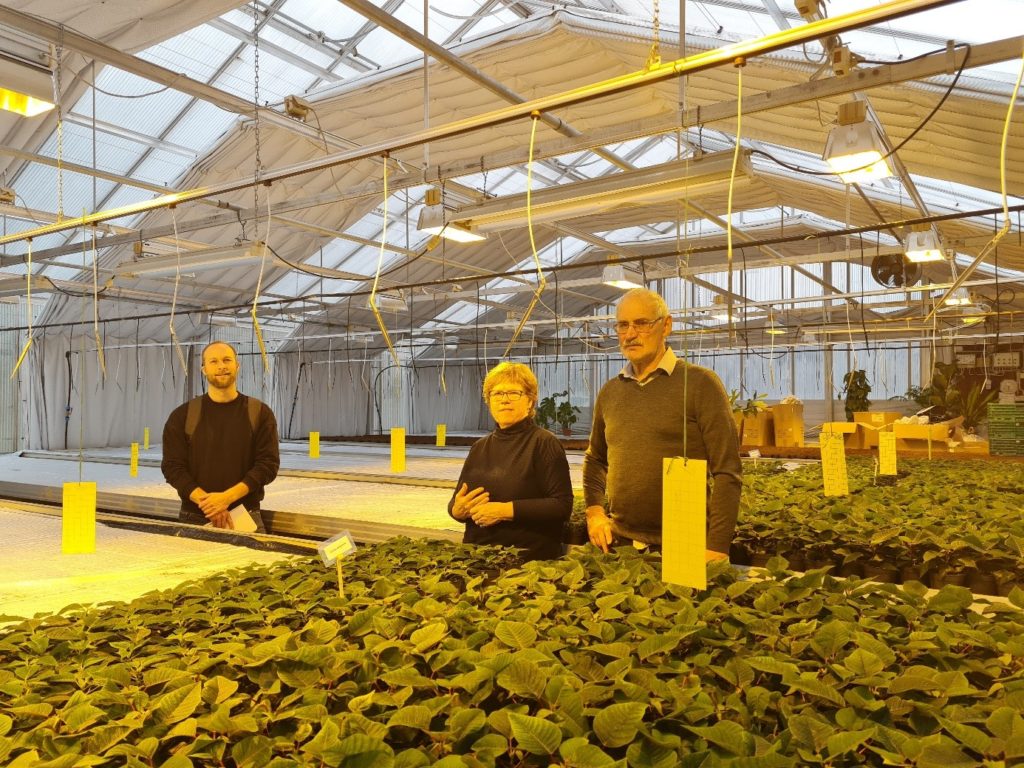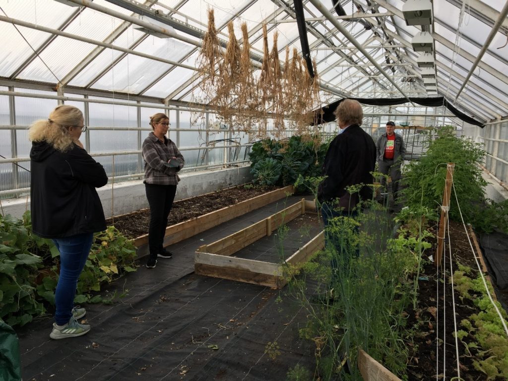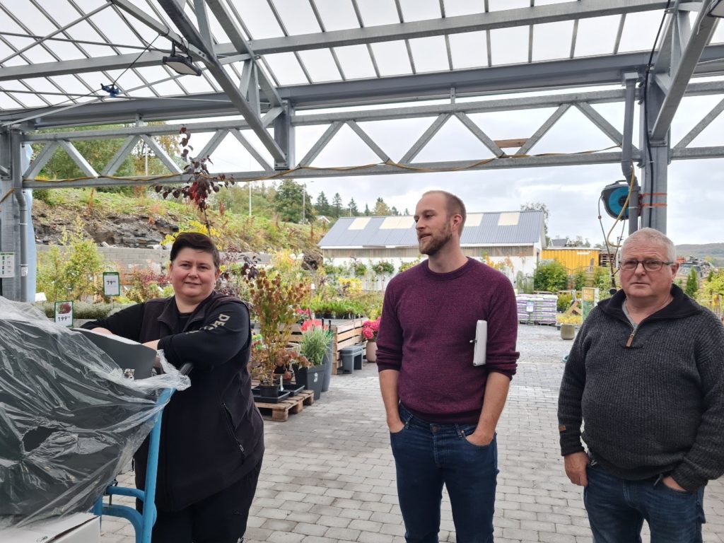 Verdens nordligste salatgartneri: På Reinøy i Troms ligger de to nordligste salatgartneriene i verden. Ekteparet Rannveig Lockertsen Mæle og Jan Helge Mæle produserer her Crispisalat eller Polarsalat som den også kalles. Varene leveres til BAMAsystemet i Tromsø som distribuerer i hele Nord-Norge. NGF fikk se en god og ryddig produksjon i faste renner på tradisjonelle rullebord da vi var på besøk på tirsdag denne uka. Det var far til Rannveig som startet med dette for mer enn 20 år siden. Selv om reiseveien for salaten kan være litt rufsete (inkludert ferge fra Reinøy), så kan ekteparet levere produktet i Tromsø på en og en halv time. Det må vi kalle kortreist! Når oppvarmingen også er 100 % fornybar er dette helt uslåelig når vi snakker om bærekraft. I kjelleren under gartneriet står det en varmepumpe som henter energi fra kollektorer i sjøen like utenfor, og slik har den stått i 20 år og levert all varme til gartneriet.Renate Eide driver Solblomsten hagesenter på Finnsnes etter å ha tatt over etter foreldrene. Med store investeringer den siste tiden har de utvidet hagesenteret og fått et lekkert anlegg hvor oppvarmingen baserer seg på fjernvarme. Fv: Renate Eide, Martin Knoop, Gunnar EideVi besøkte også NIBIO Holt som ligger i Tromsø. Vi snakket med stasjonssjef Erlend Winge, Odd-Arild Finnes og Inger Martinussen som er leder for Divisjon matproduksjon og samfunn i NIBIO. De samarbeider tett med Universitetet i Tromsø og har gode forhold med forsøksveksthus og fytotron. Vi var enige om at hagebruket har lyse framtidsutsikter og at ny kunnskap og gode betingelser må til for å styrke næringen. Fv: Martin Knoop, Erlend Winge, Odd-Arild FinnesEkteparet Terje og Anne Marie Kirkhus Dahl har bygd opp et solid gartneri med hagesenter og butikk i Bardufoss; Fagerlidal. De har produksjon av vår/sommerblomster og julestjerner samt driver binderivirksomhet. For tiden har de god hjelp i sønnen Martin.Ellen Eliseussen (nr 2 fra venstre) , Næringsrådgiver Kvæfjord kommune inviterte oss til å se på veksthusanlegget på Rå VGS i Kvæfjord for å gi råd rundt videre bruk av anlegget. Nettverket Kværfjord Matkultur SA ser nå på mulighetene for å ta i bruk anlegget. På bildet er to av medlemmene i nettverket, Susanne Hentschel og Frode Vik.På Lunde Gartneri- på Grytøya utenfor Harstad, legges nå roseproduksjon ned for godt. Ekteparet Herstein og Bente Lunde satser nå videre på blant annet vår/sommerblomster, julestjerner, jordbær, frukt og tomat, mye til direkteutsalg på gartneriet.Remi Robertsen ved Nathanielsen Hagesenter i Harstad viste oss et flott anlegg med nyinstallert varmepumpe fra lokalfirmaet Polar Energi. Remi driver også Hagesenter i Narvik og satser sterkt på videre drift.Fred Lind driver Ryphaugen Gård og Gartneri på Alsvåg nordvest for Harstad. På bildet inspiserer vi Fred sin Hargassner pelletskjel som fungerer aldeles utmerket.Bjørn Kristoffersen (tv) driver Nygård Hagebruk Nord for Tromsø. De har allsidig produksjon og har nylig installert borrehullsvarmepumpe for oppvarming av gartneriet.